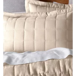 Australian House & Garden Sandy Cape Washed Belgian Linen Quilted Coverlet Moonbeam