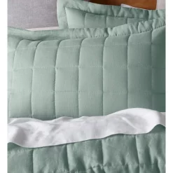 Australian House & Garden Sandy Cape Washed Belgian Linen Quilted Coverlet Eucalyptus